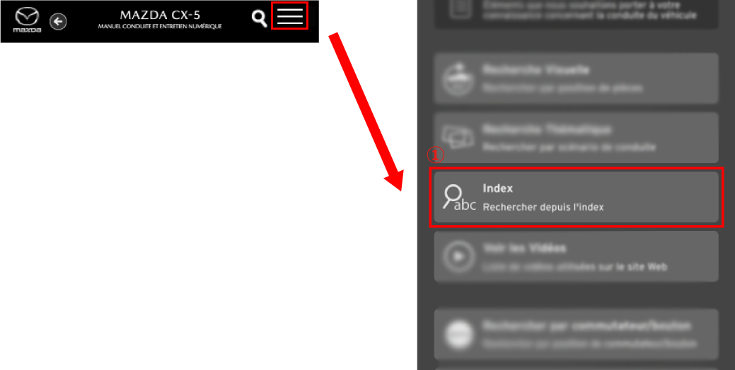 - Il existe deux méthodes pour afficher l'index. L'affichage bascule automatiquement sur l'affichage qui est la plus adapté à la taille d'écran de l'appareil utilisé.