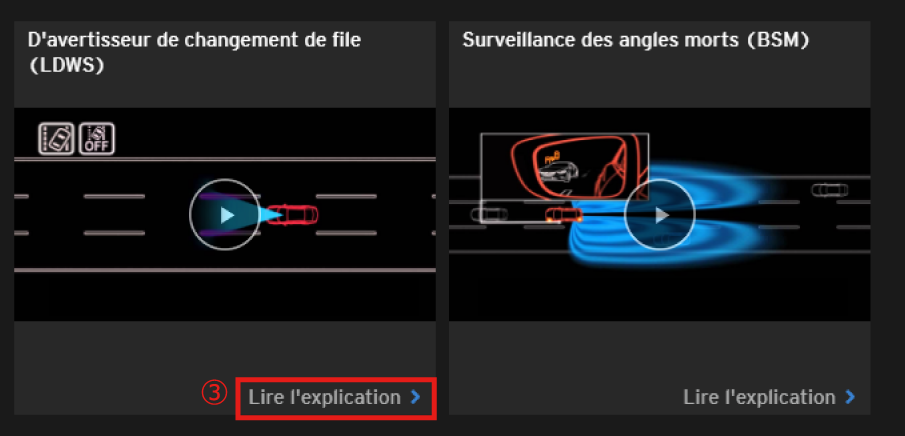 Vous pouvez rechercher les informations dont vous avez besoin en sélectionnant le scénario dans lequel vous conduisez le véhicule.