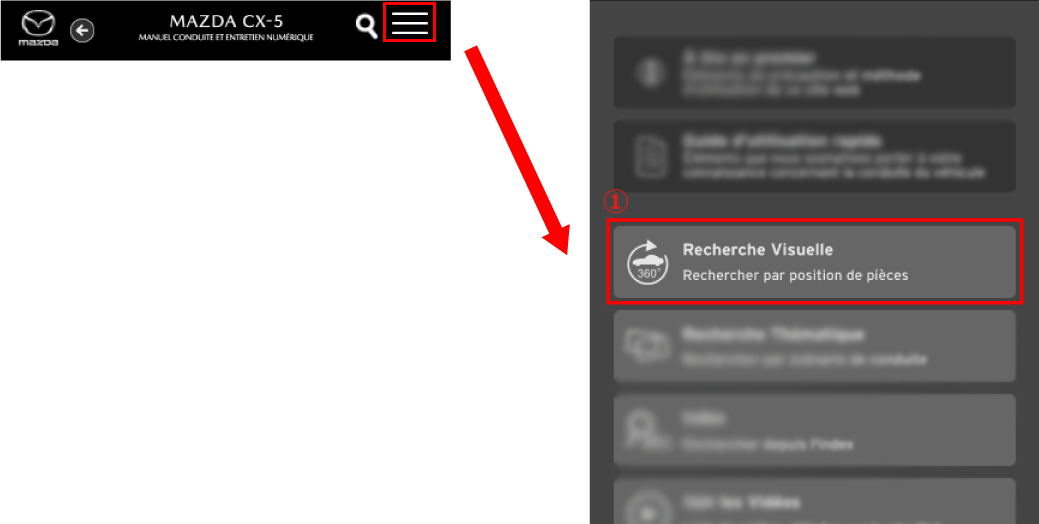 Vous pouvez rechercher les informations dont vous avez besoin en cliquant sur l'emplacement d'une pièce ou d'une zone du véhicule.