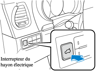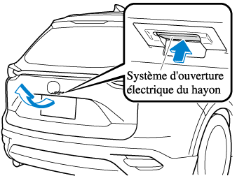 Ouvrir complètement le hayon et s'assurer qu'il reste ouvert. Si vous n'ouvrez le hayon que partiellement, il pourrait se refermer brutalement en raison de vibrations ou de rafales de vent et causer des blessures.
