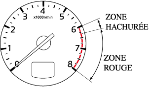 Affiche la température du liquide de refroidissement moteur. La jauge blanche indique que la température du liquide de refroidissement du moteur est basse, et la jauge rouge indique qu'elle est élevée et en surchauffe.