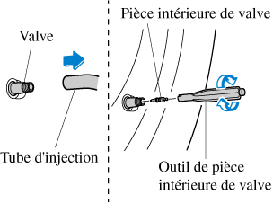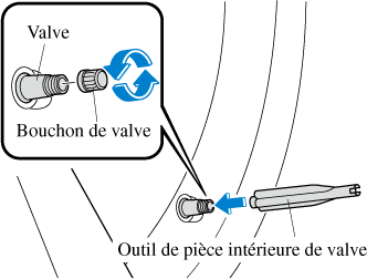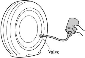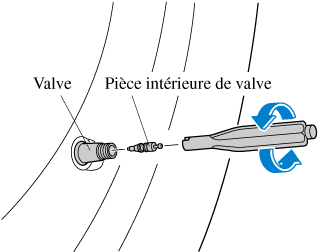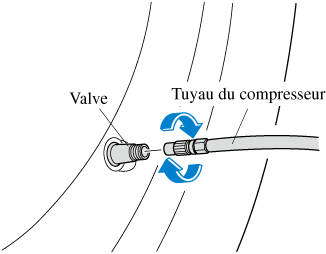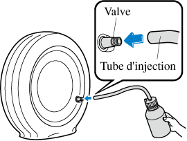 Une roue de secours à usage temporaire n'est pas fournie avec ce véhicule Mazda. En cas de crevaison, utiliser le kit de réparation d'urgence de crevaison pour une réparation temporaire du pneu. Lors de l'exécution de la réparation, se référer aux instructions fournies avec le kit de réparation d'urgence de crevaison. Si une réparation temporaire a été effectuée sur un pneu crevé à l'aide du kit de réparation d'urgence de crevaison, demandez à un mécanicien expérimenté, un mécanicien agréé Mazda est recommandé, pour faire réparer ou remplacer le pneu dès que possible.
