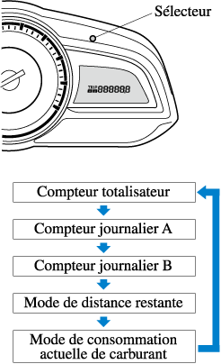 La jauge de carburant indique la quantité approximative de carburant restant dans le réservoir lorsque le contacteur est mis sur ON. Il est recommandé de garder le réservoir à plus de 1/4 plein.