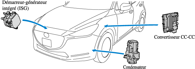 Le M Hybrid utilise l’alterno-démarreur intégré (ISG) avec une excellente efficacité de production d'énergie pour produire de l'électricité à partir de l'énergie cinétique produite lorsque le véhicule décélère. Le système utilise l'énergie électrique stockée dans le condensateur, qui est une batterie pour améliorer la conduite et la consommation de carburant en réduisant la charge du moteur et en fournissant une assistance moteur. De plus, l'ISG permet un redémarrage silencieux du moteur après l'arrêt du moteur par la fonction i-stop (arrêt au ralenti).