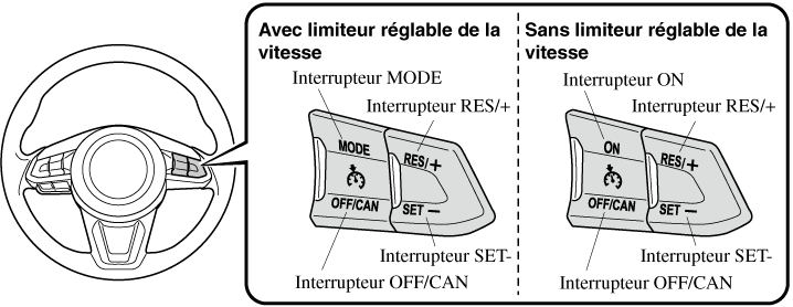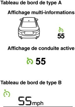 L'indication s'allume (vert) lorsqu'une vitesse de croisière est réglée.