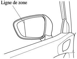 La distance perçue des objets dans les deux zones du rétroviseur grand-angle est différente. Les objets reflétés dans la zone extérieure sont en fait plus éloignés que ceux reflétés dans la zone intérieure.