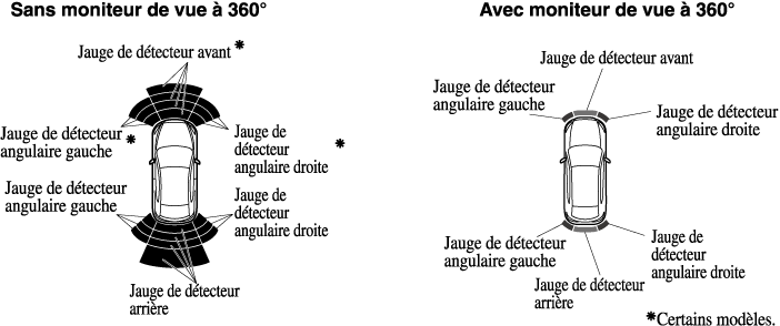 Détecteur avant: Moins d'environ 35 cm Détecteur de coin avant: Moins d'environ 25 cm |