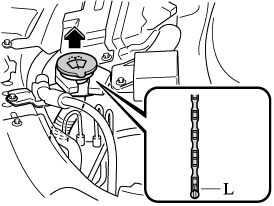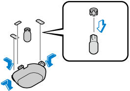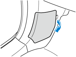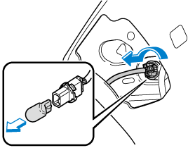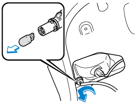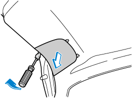 Insérer en tournant un tournevis à tête plate enroulé de ruban dans le sens de la flèche et ouvrir le couvercle légèrement.