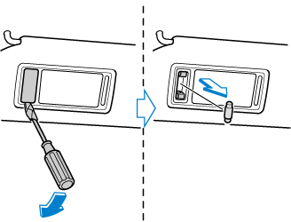 Insérer le tournevis à tête plate enroulé de ruban dans l'espace et le glisser dans le sens de la flèche.
