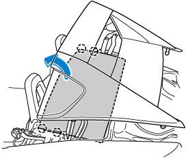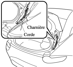 • Certaines étapes de la procédure nécessitent l'utilisation de plusieurs outils au même moment et un certain niveau d'expertise technique. De plus, le fait de maintenir le corps tendu au-dessus du véhicule risque de causer un froissement musculaire. Mazda recommande donc de faire vérifier le toit par un mécanicien agréé Mazda.