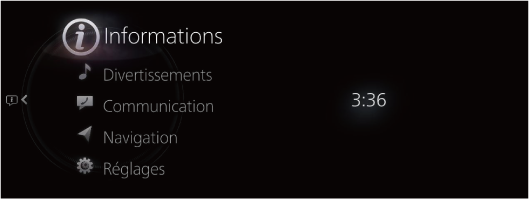 Appuyer sur l’interrupteur de commande pour afficher le menu.