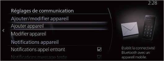 Les données du répertoire téléphonique de l'appareil Bluetooth® peuvent être enregistrées dans les contacts de l'unité à l'aide du Bluetooth®.